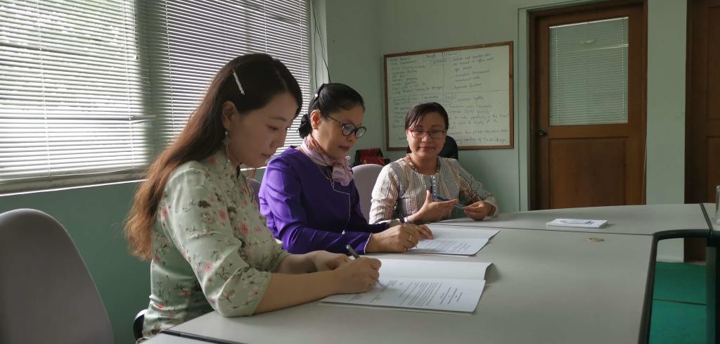 介绍完毕后,徐明华老师与NMDC大学董事长Tin Tin Htwe女士在会议厅签署了合作意向书。该意向书旨在建立双方院校学术教育交流的桥梁,为今后的长期深度合作奠定基础,促进双方新闻传播教育的国际化发展,同时加强中缅文化交流,促进两国新闻媒体事业的共同发展。
