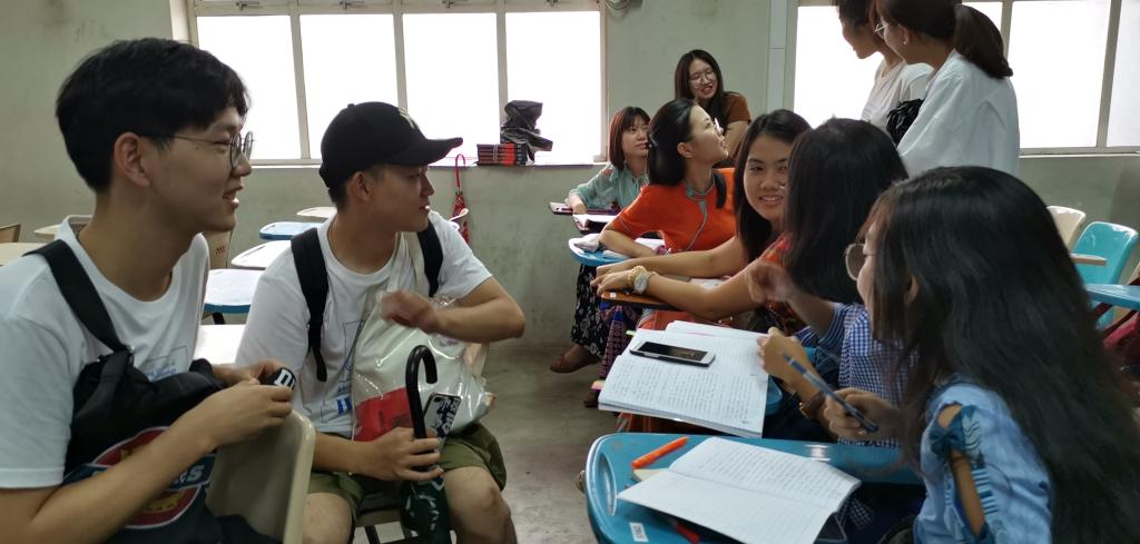 除了专业学习之外,同学们还探讨了许多丰富多彩的内容。明星偶像永远是女生的共同话题。当谈到各自喜欢的偶像时,彼此之间原本拘束紧张的气氛瞬间消失,大家一下子打开了话匣子。对偶像的热爱超越了国界与文化差异,idol社交拉近了大家的距离,尖叫与欢笑此起彼伏。