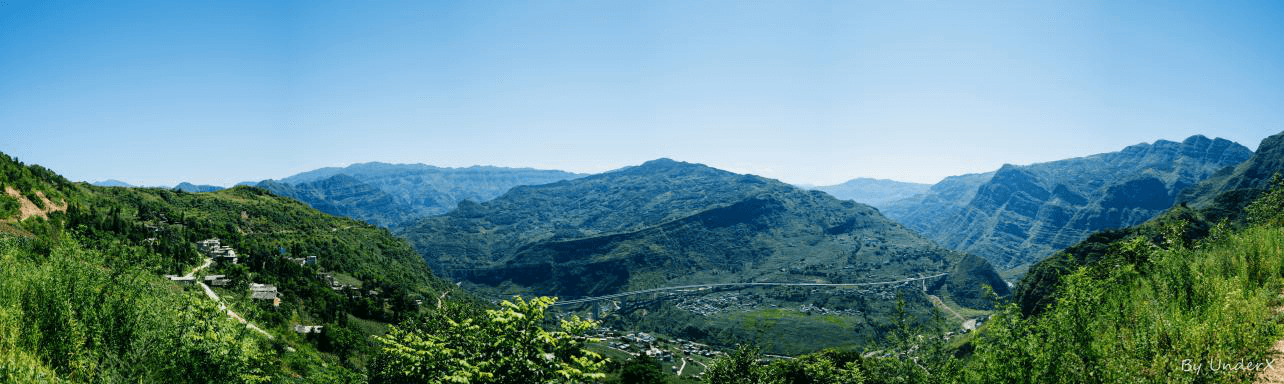 溯河而上,悬泉高挂,重峦叠嶂,大桥飞架。