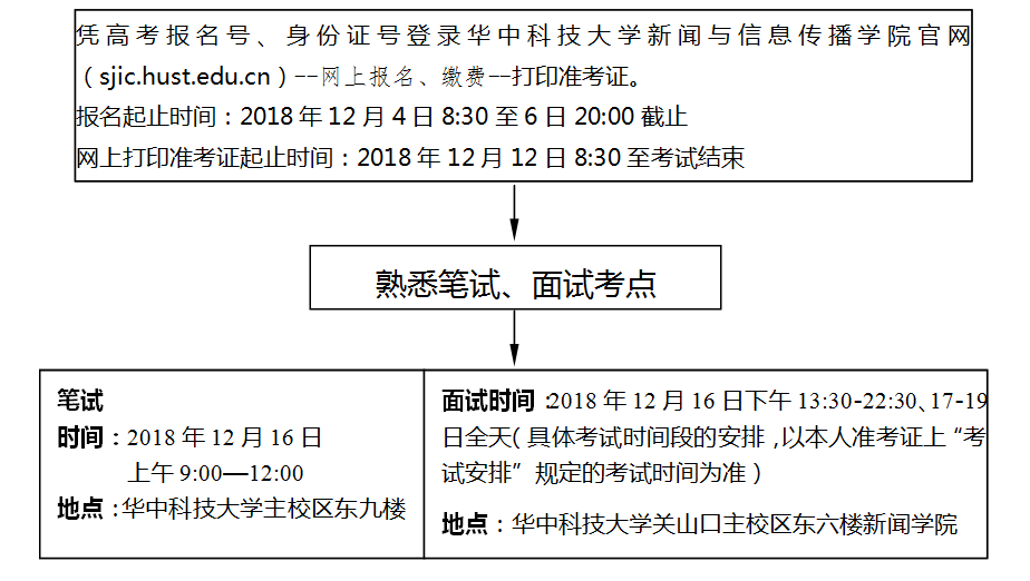 取得艺术类高考报名号并完成高考报名的考生,于2018年12月4-6日(12月4日8:30开始,12月6日20:00截止),凭高考报名号及身份证号登录威廉希尔足球官网官网(网址sjic.hust.edu.cn),进行专业统考报名,填报相关信息并完成网上缴费。网报结束后,系统将自动关闭,未在规定时间内完成网上报名及网上缴费的,视为未报名,不予安排考试。