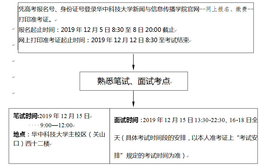 (2)面试时间:2019年12月15日13:30-22:30、16-18日全天,每位考生的具体面试时间安排以考生本人准考证上“考试安排”规定的时间为准。
