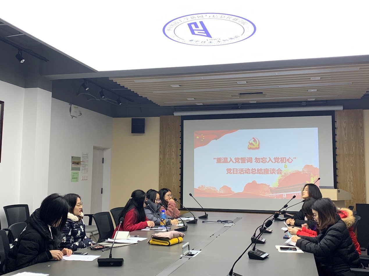 《我宣誓》学唱结束后,支部党员针对近期参与的以“重温入党誓词 勿忘入党初心为主题的系列党日活动进行了座谈总结。在你言我语的讨论中抒发着自己对于入党誓词的感悟。
