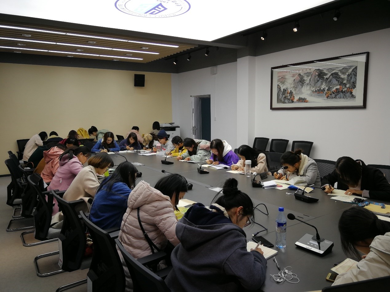 专题党课过后全体党员进行了入党誓词书法大赛,全体与会人员拿出早已准备好的纸笔,心怀激情,坐姿端正,用黑色的笔墨,在纸上认真地写下入党誓词,在一笔一划之间感受入党誓词的温度。