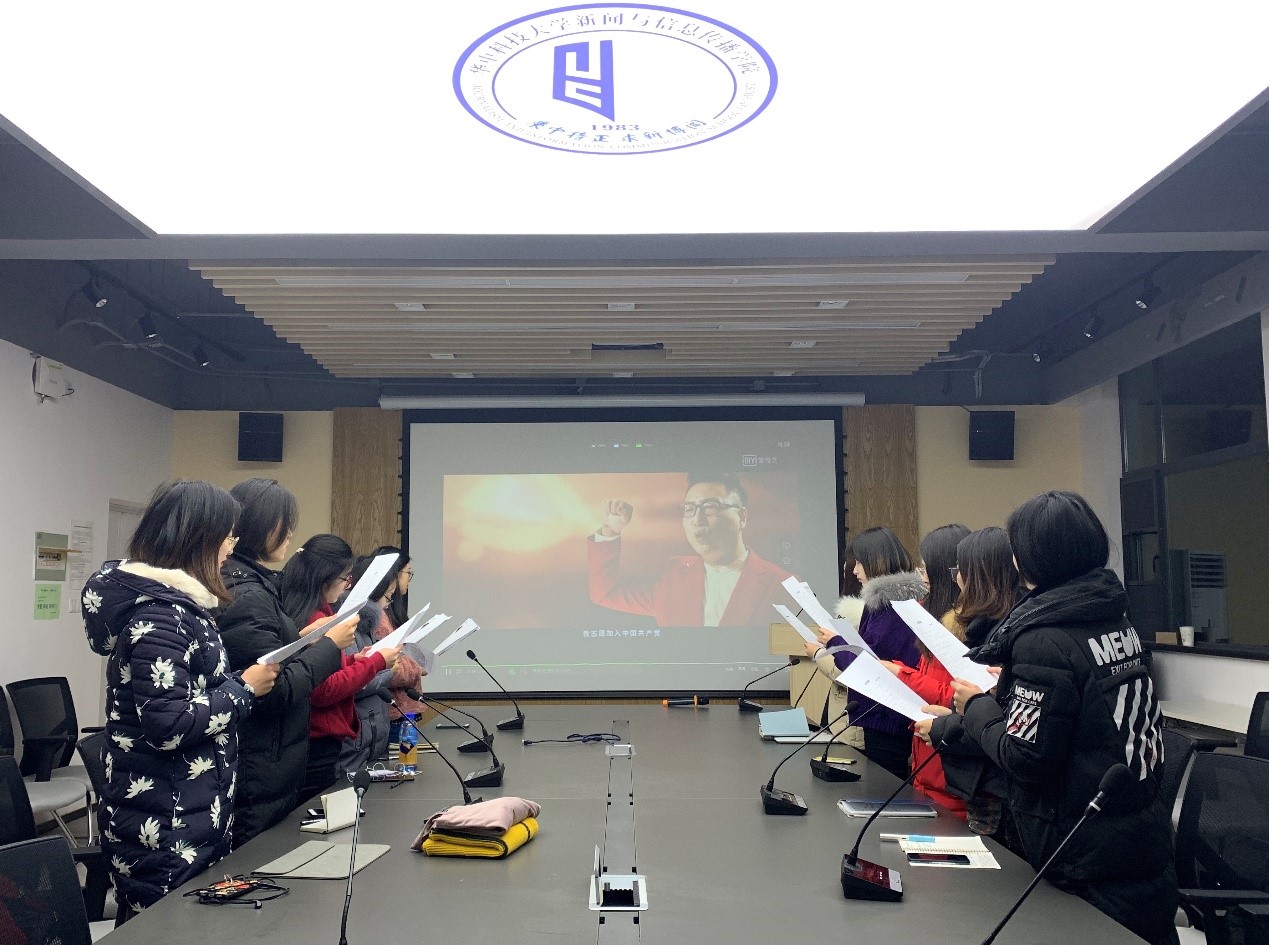 20181214日,17级硕士传播广告党支部开展了学唱由中国军网推出的入党誓词歌《我宣誓》活动,唱响了永远跟党走、奋进新时代的主旋律。