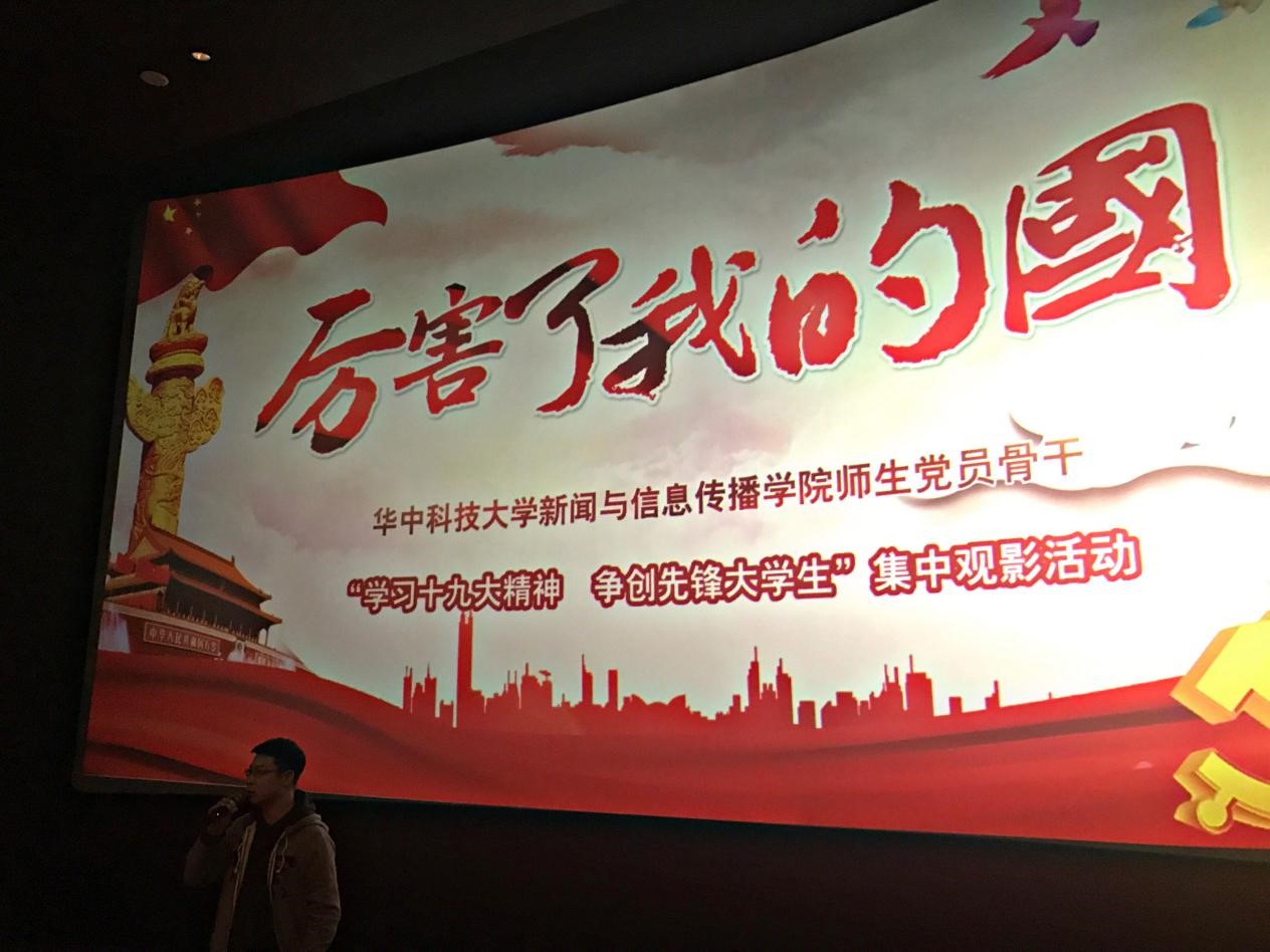 为充分提升我院党员干部对党的十八大以来中国改革开放和社会主义现代化建设取得的历史性成就的认识,3月22日下午,威廉希尔足球官网组织师生党员骨干到影院观看了大型新闻纪录片《厉害了,我的国》,以实际行动为祖国点赞。