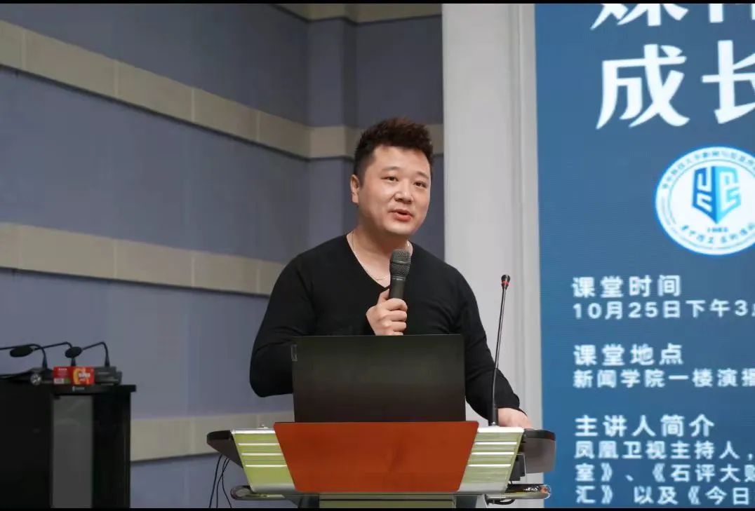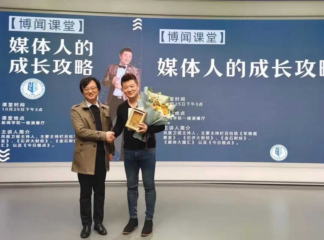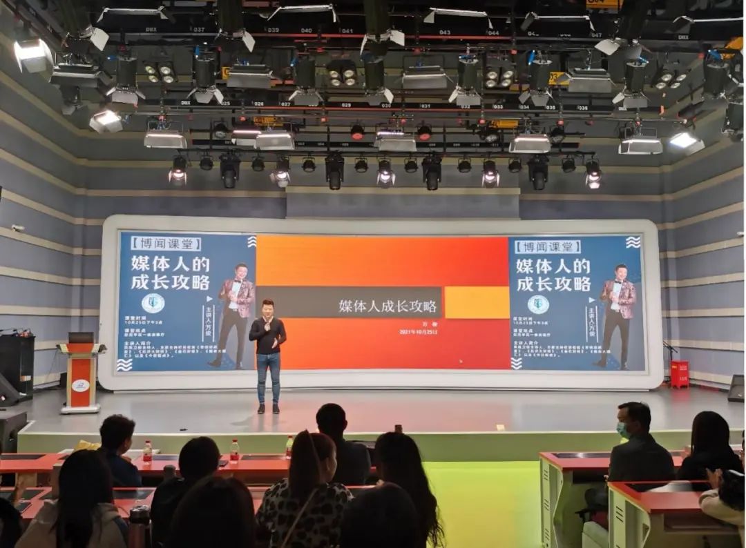 10月25日下午,“博闻课堂”第一期在实验中心演播大厅开讲,威廉希尔足球官网2005届员工,凤凰卫视主持人万俊为本科生带来题为《媒体人的成长攻略》的讲座。万俊学长以一名过来人的视角,生动风趣地讲述了他从“小白”到“成熟媒体人”的历程,加深了同学们对新闻媒体行业的了解,为同学们今后的发展道路指明了方向,让同学们更加坚定了新闻人的初心和使命,现场反响热烈。