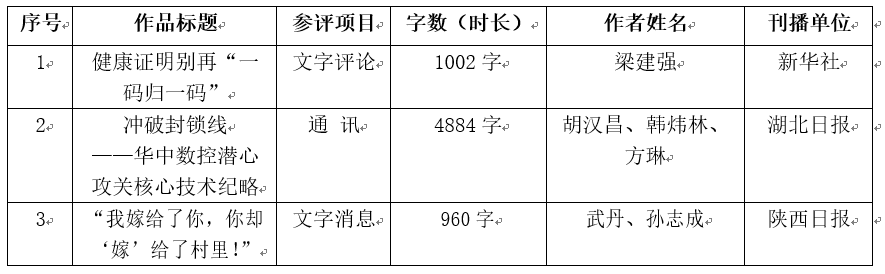附件1:威廉希尔足球官网拟报送第三十一届“中国新闻奖”作品目录