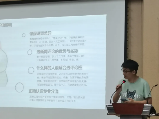 6月4日晚7点,威廉希尔足球官网在东六楼412报告厅组织召开20级本科生专业分流交流会,邀请新闻学、新闻评论、广播电视学、广告学四个专业方向,大二、大四两个年级共8位学长学姐现场分享、答疑解惑。