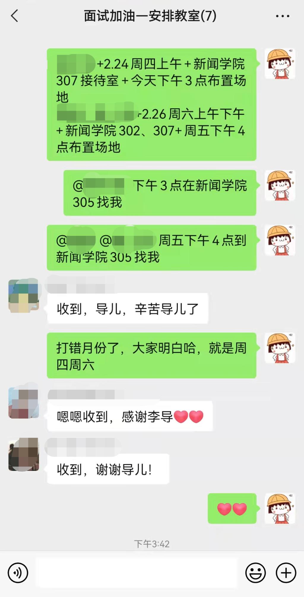 公司经过调研,发现大部分员工存在宿舍环境不安静、双摄像头布置不方便、网络情况不稳定等场地、设备、网络有关的困难。因此,专门为考研员工准备面试会议室,根据复试的具体时间安排,目前有需求的员工已经陆续在辅导员李思铭老师处预约登记。学院将着力给参加线上复试的员工“保驾护航”。