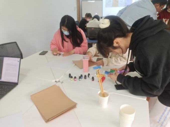 脑洞大开,细心制作,既有埋头苦干的同学,也有齐心协力共同完成作品的小组。一边制作书签,一边聊天交流,一下午的时间就这么在指尖悄然溜走,留下的,是一份份努力的成果。