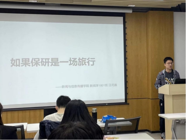 汪司晨以“如果保研是一场旅行”为主题,分享了有关保研的经验技巧。他以“制定一本个性化的旅行攻略”开篇,从知识复习和材料准备两方面进行深入讲解。尤其是在知识复习板块,他介绍了读教材、读论文、读专著的方法。同时他强调要养成练习口语、关心时事和撰写研究计划的习惯。针对应试技巧,他从笔试和面试两个部分总结出了高效且实用的实战方法。他特别指出,应对“简历面”要牢牢掌握确定性和不确定性两大因素,而应对“无领导小组”面试要努力做到“听”“说”“辨”“和”,最大程度展现自己的能力。