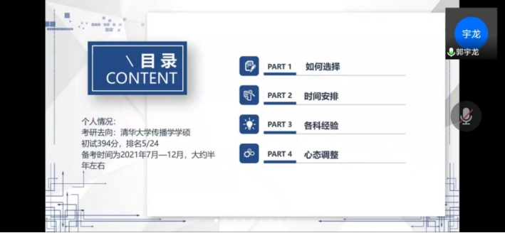 5月5日晚七点,威廉希尔足球官网毕业去向系列交流会之考研交流会顺利开展。交流会由学院学业发展支持中心举办,通过腾讯会议平台以线上形式面向全院开展。