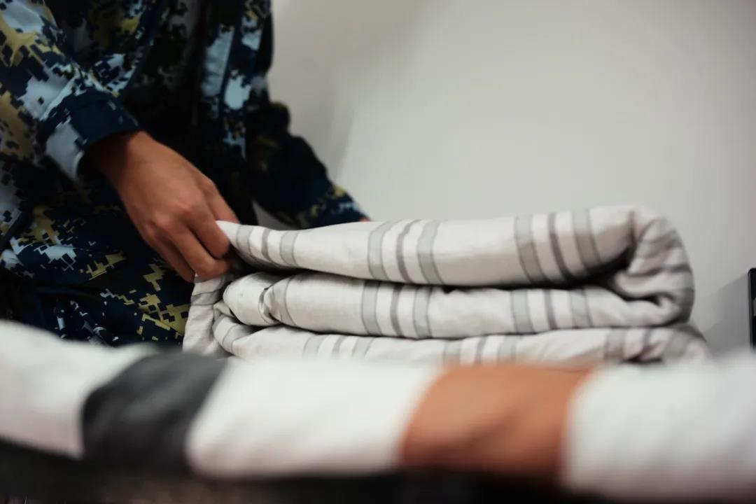 又是一年内务整理,每到这个环节,就是同学们“大开眼界”的时候了。看着整齐的“豆腐块”从教官手中出现,大家都开始动手。培养良好的生活习惯和作风,是内务整理这一堂课带给他们的。