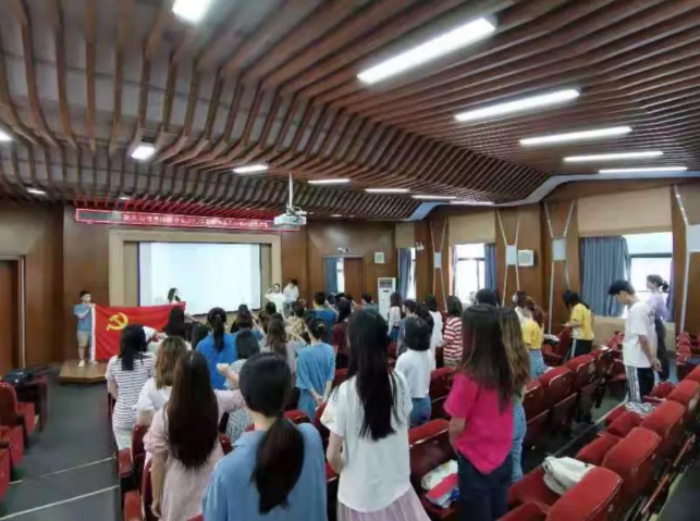 在领誓人邵恒媛宣读了参加宣誓的新党员名单后,25名预备党员举起右拳,铿锵有力地集体宣誓,庄严地表达自己的信仰,愿为共产主义奋斗终生,在场的入党积极分子对党旗行注目礼。随后,新党员们集体学唱了《国际歌》,仪式结束后,学院组织集体开展党史学习教育“红色文物青年说”专题学习。