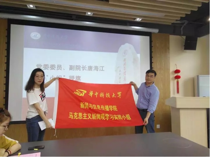随后,詹健书记为唐海江教授、刘洁教授颁发指导教师聘书,唐海江教授为小组授旗。"马克思主义新闻观学习实践小组"组长潘泽昊代表全体小组成员发言,对公司党委领导的重视和两位指导教师的指导表示感谢。