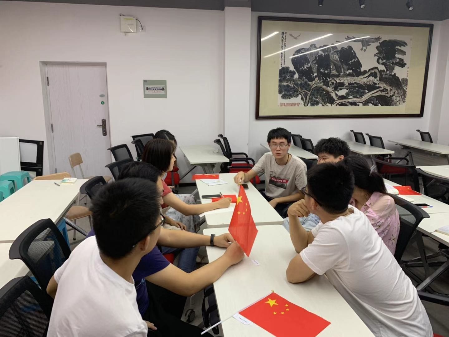 “我和我的祖国,一刻也不能分割,无论我走到哪里,都流出一首赞歌......” 优美的旋律拉开了“青春献声,祝福祖国”的序幕,全体同志起立,挥舞着手中的国旗,高声齐唱《我和我的祖国》,用最美的歌声向祖国70华诞献礼,祝福祖国更加繁荣昌盛。悠扬的歌声萦绕在教室每一个角落,热爱祖国的深情激荡在现场每个人的心田。