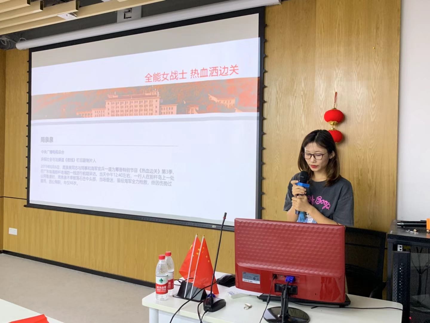 接着,18级硕士传播广告党支部宣传委员郭艳同志讲述《不忘初心 用镜头记录时代》微党课,带领大家学习深入前线采访却不幸遇难的媒体人周泉泉的事迹,她用双脚丈量边疆,不畏艰险,用镜头记录时代,用爱的光芒照亮他人,在同事眼中,她就是千千万万媒体人的样子,坚守着媒体人的初心品格与“铁肩担道义,妙手著文章”的使命。