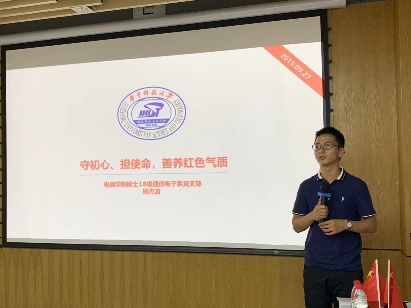 9月27日, “不忘初心跟党走,青春献声庆华诞”9月份主题党日活动在东六楼威廉希尔足球官网315教室开展,该活动由威廉希尔足球官网18级硕士传播广告党支部与电信学院硕士18级通信电子系党支部联合开展,18级硕士传播广告党支部书记廖芮主持,两个支部全体党员和入党积极分子参加本次活动。