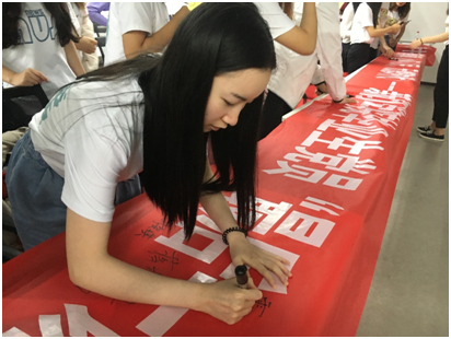 最后,毕业生党员们在横幅上签名留念,书写自己对未来的畅想。新时代新青年要乘新时代春风,在祖国的万里长空放飞青春梦想。誓言在耳边回响,青春在党旗下绽放,希望毕业生们都能在自己的岗位上书写williamhill威廉希尔官网新闻人的芳华。