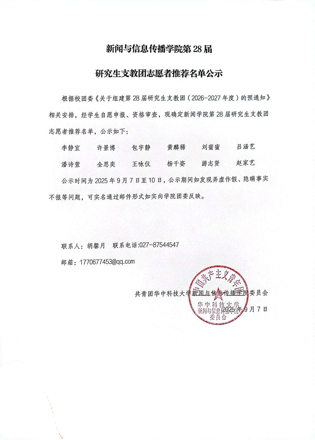 威廉希尔足球官网第28届研究生支教团志愿者推荐名单公示